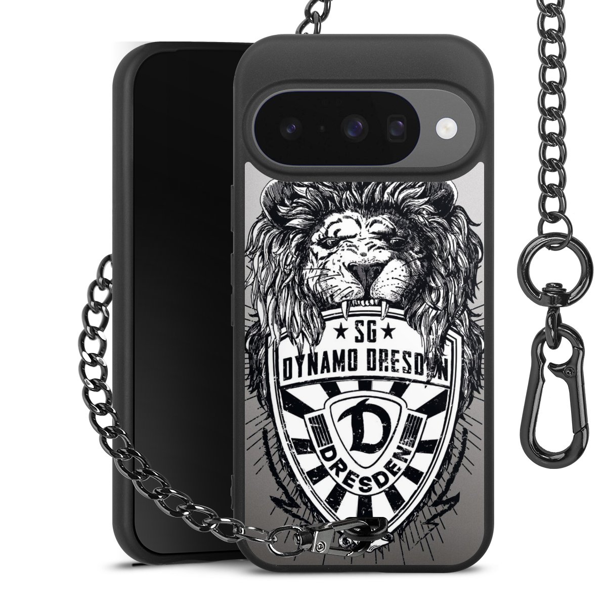 Die mattschwarze Silikon-Handyhülle besteht aus robustem TPU (thermoplastisches Polyurethan). Sie ist flexibel und schützt Dein Smartphone vor Stößen und Kratzern. Die Kette sowie der Karabinerhaken sind aus Metall in Gunmetal-Optik gefertigt. Für dieses Produkt kommen ausschließlich TÜV-geprüfte Materialien zum Einsatz.