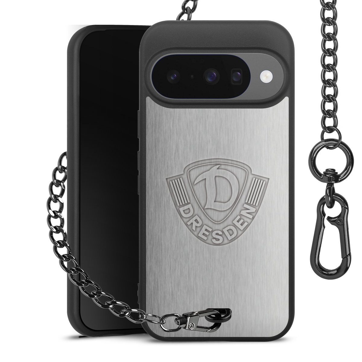 • Mattschwarze Handyhülle mit Metallkette