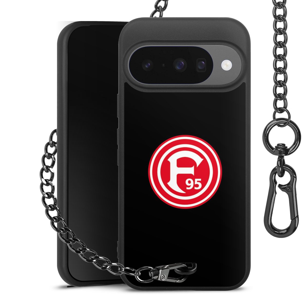 • Mattschwarze Handyhülle mit Metallkette