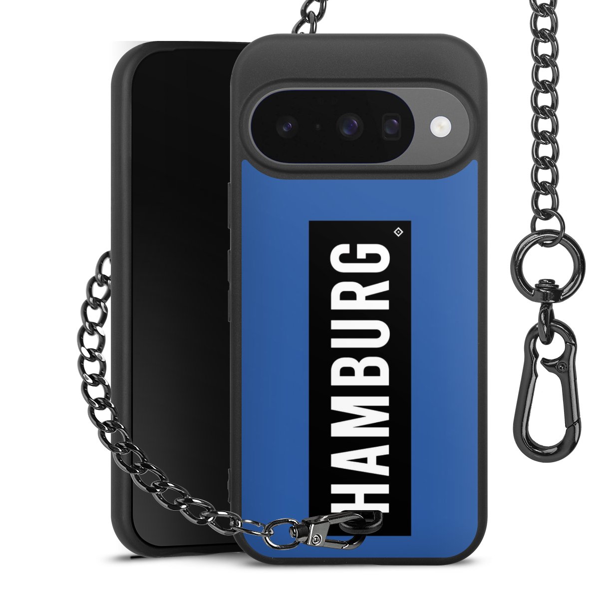 • Mattschwarze Handyhülle mit Metallkette