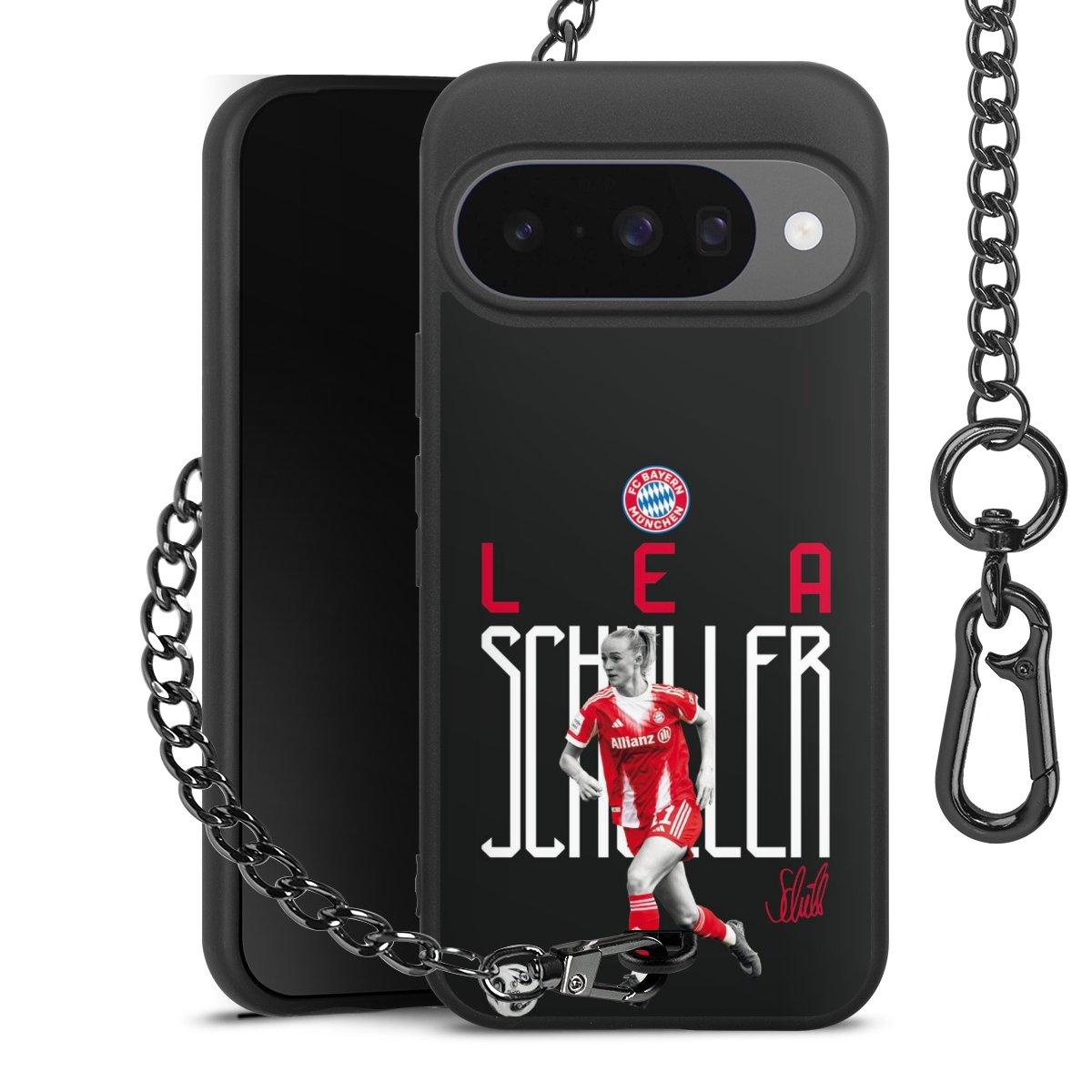 • Mattschwarze Handyhülle mit Metallkette