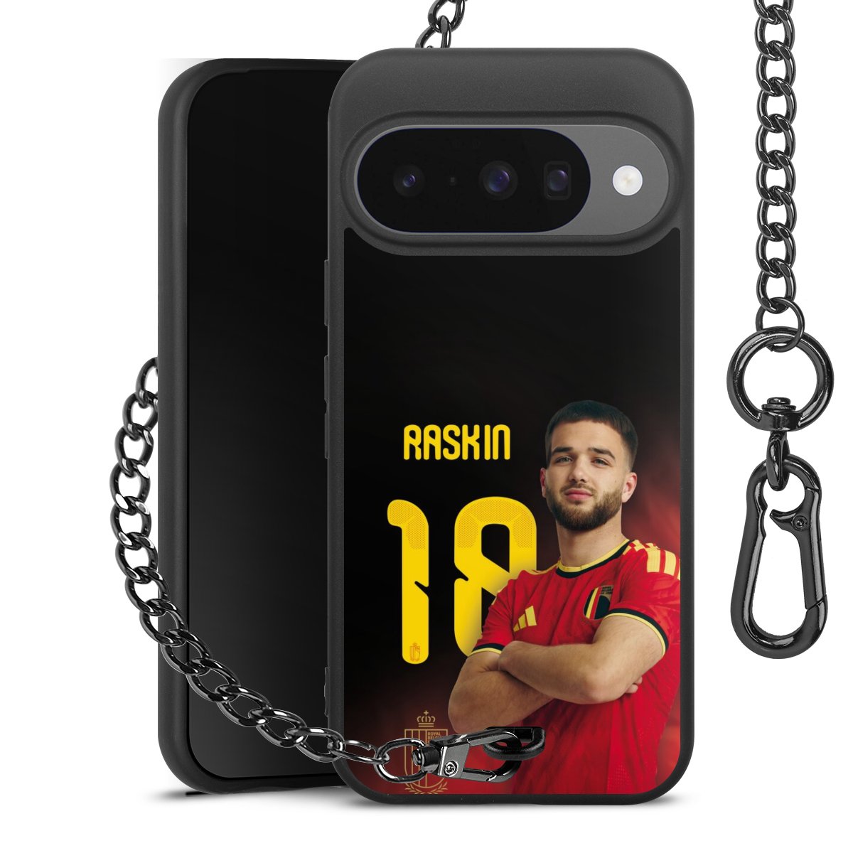 Die mattschwarze Silikon-Handyhülle besteht aus robustem TPU (thermoplastisches Polyurethan). Sie ist flexibel und schützt Dein Smartphone vor Stößen und Kratzern. Die Kette sowie der Karabinerhaken sind aus Metall in Gunmetal-Optik gefertigt. Für dieses Produkt kommen ausschließlich TÜV-geprüfte Materialien zum Einsatz.