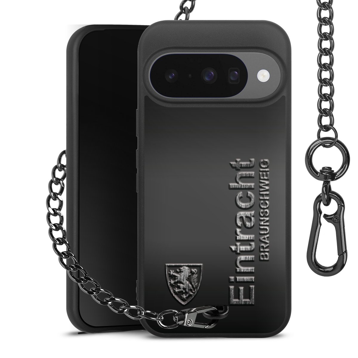 • Mattschwarze Handyhülle mit Metallkette
