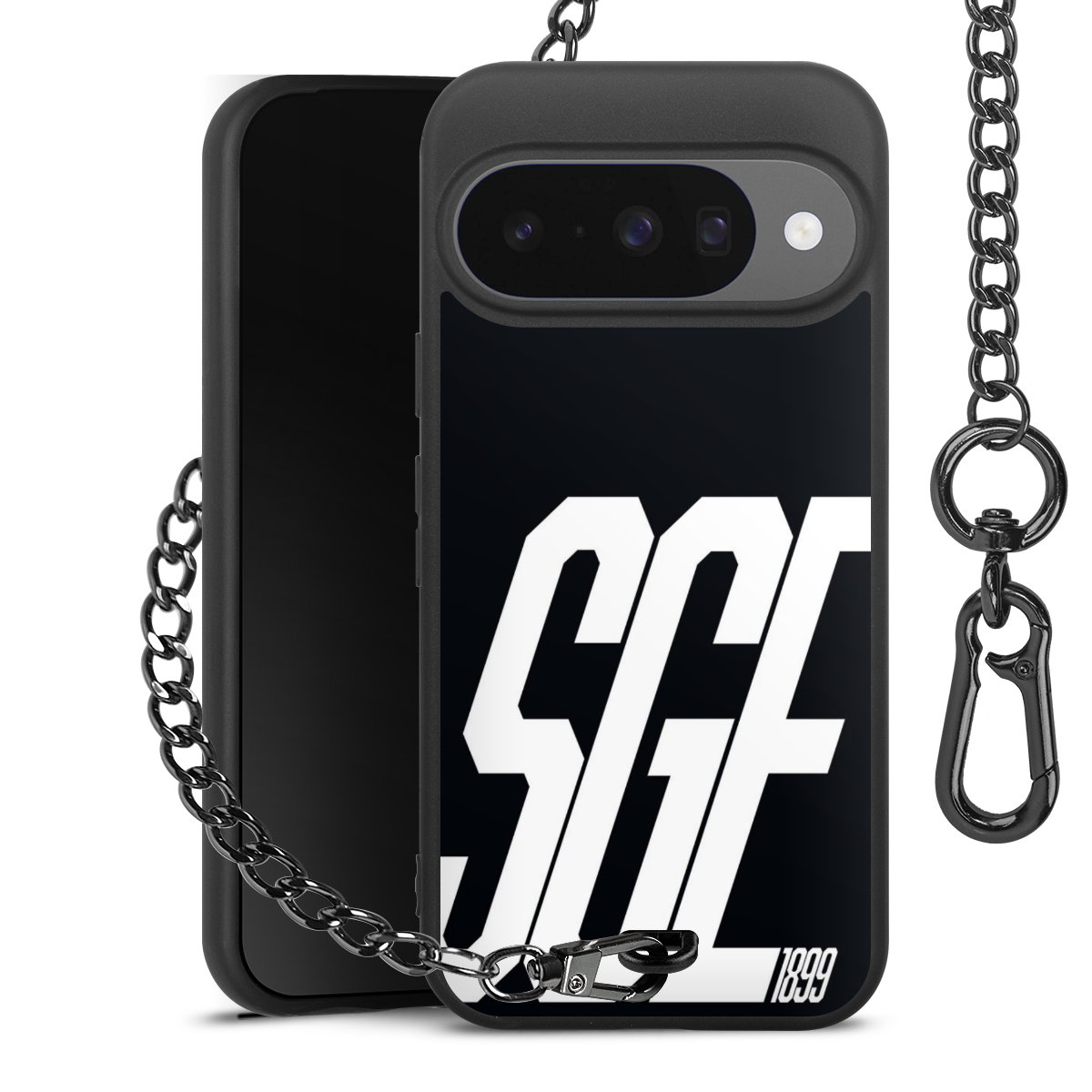 • Mattschwarze Handyhülle mit Metallkette