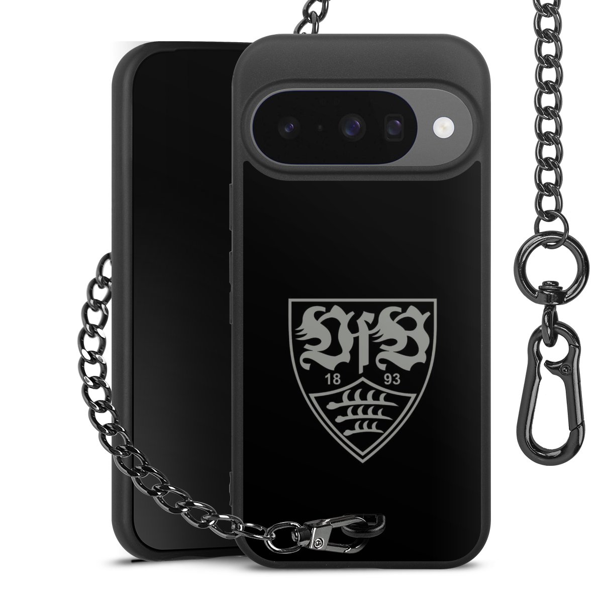 • Mattschwarze Handyhülle mit Metallkette