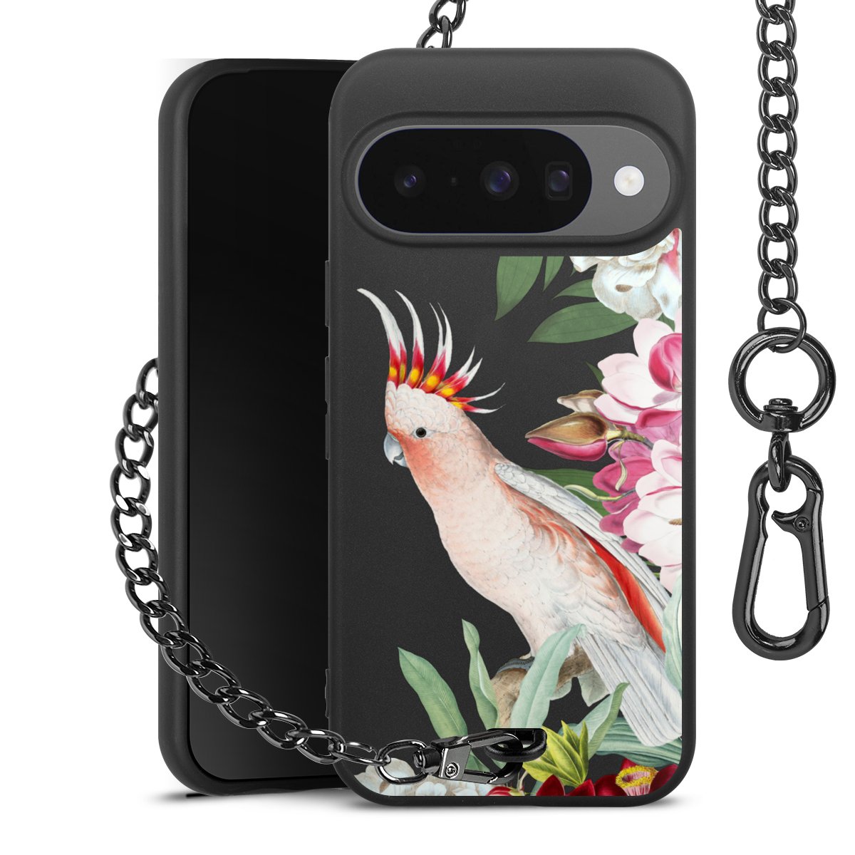 • Mattschwarze Handyhülle mit Metallkette