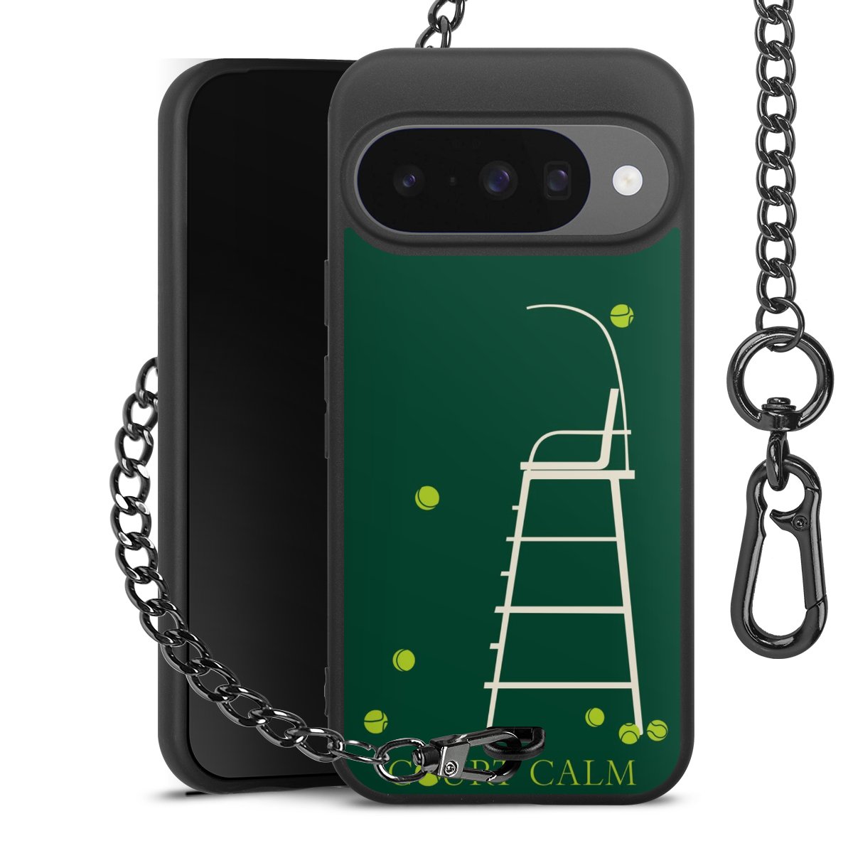 - Mattschwarze Handyhülle mit Metallkette