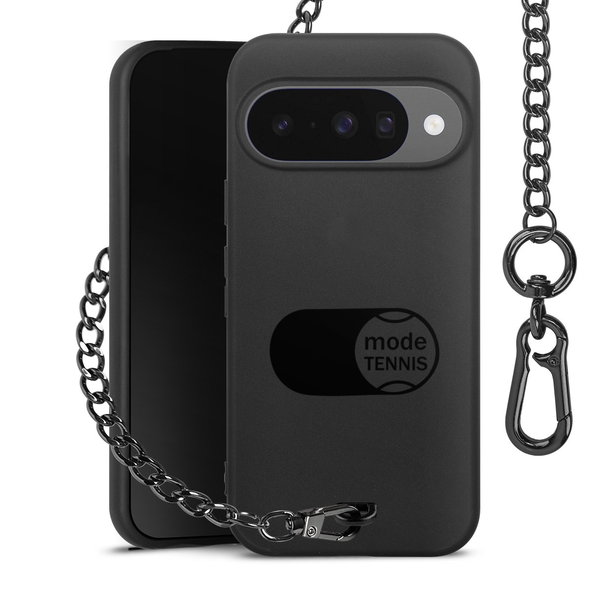 • Mattschwarze Handyhülle mit Metallkette