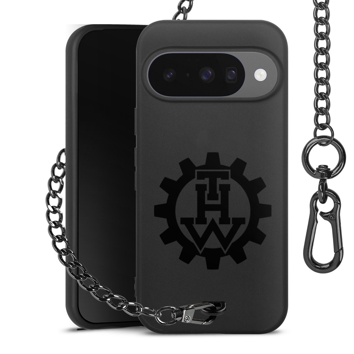 • Mattschwarze Handyhülle mit Metallkette