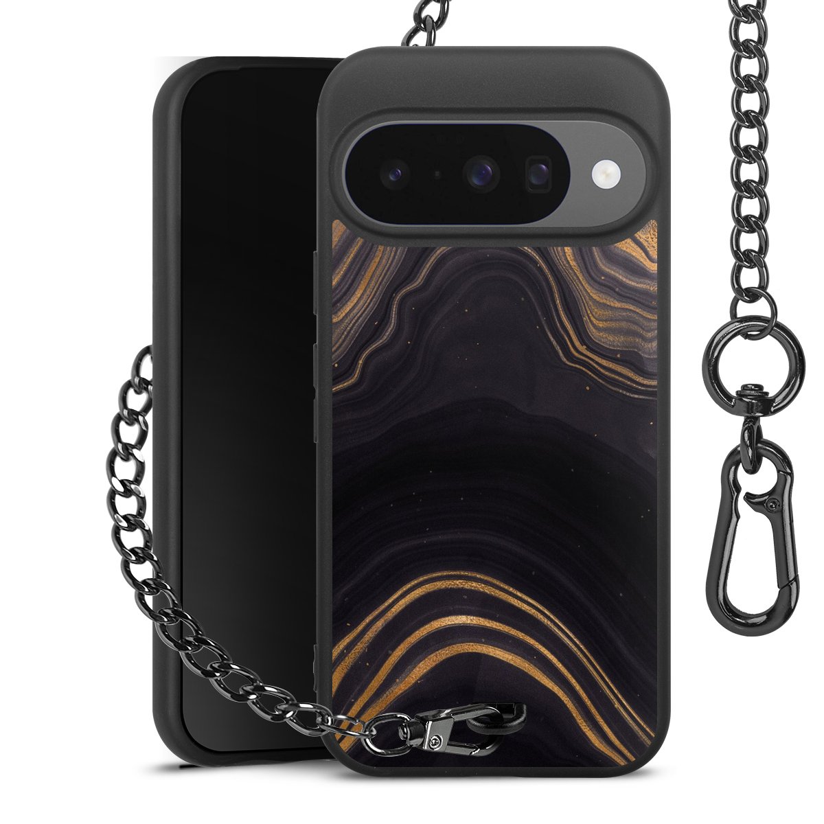 • Mattschwarze Handyhülle mit Metallkette