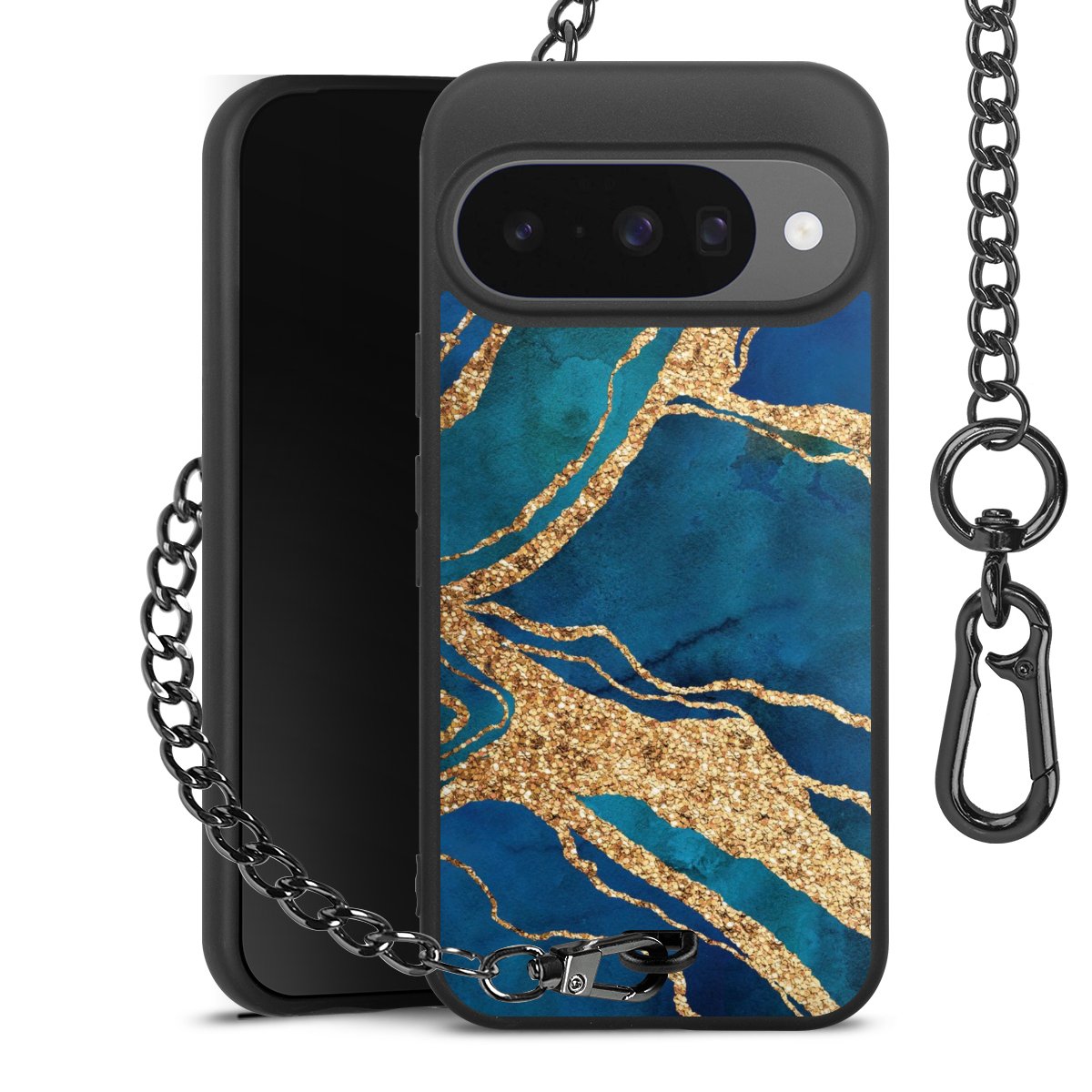• Mattschwarze Handyhülle mit Metallkette