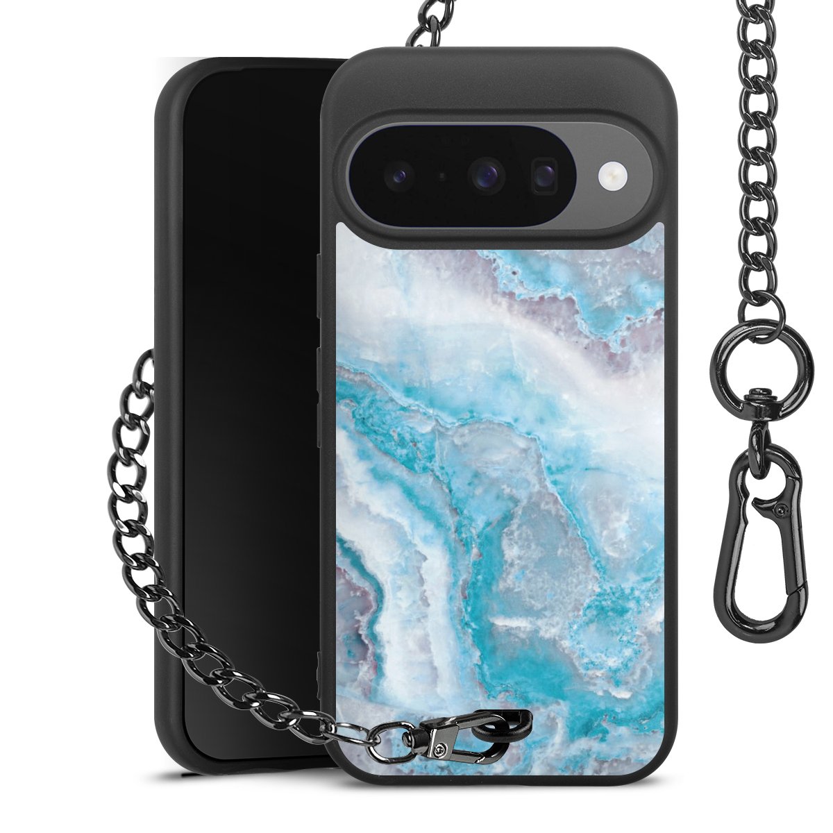 • Mattschwarze Handyhülle mit Metallkette