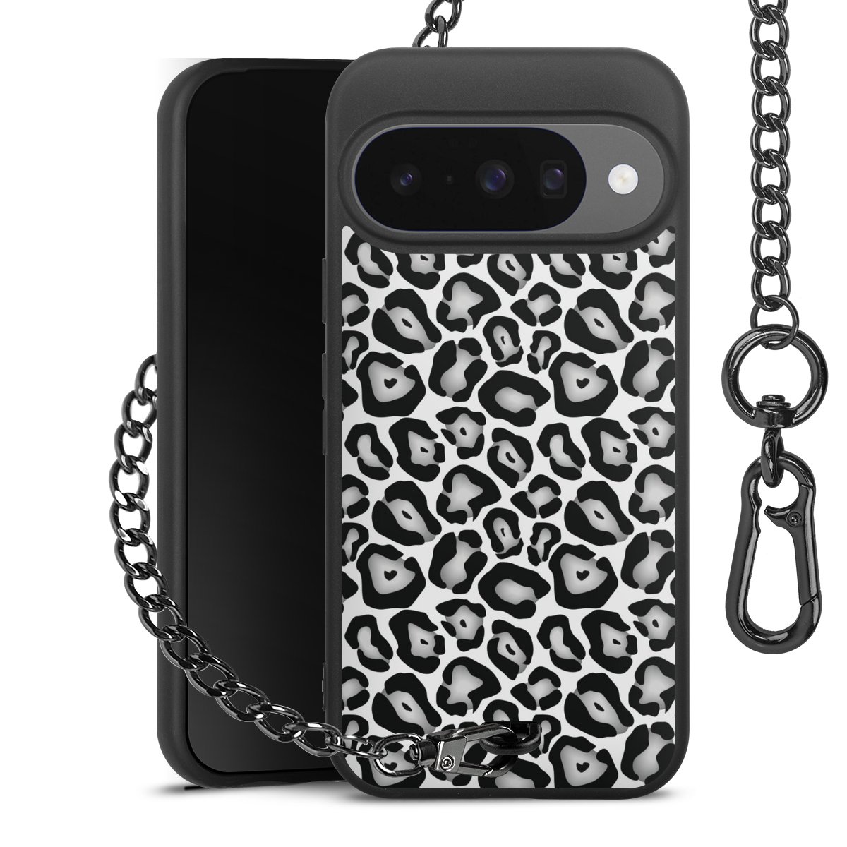 - Mattschwarze Handyhülle mit Metallkette