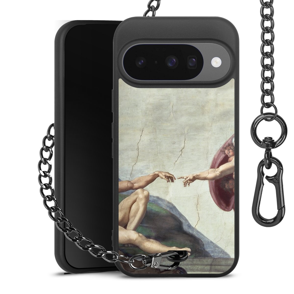 • Mattschwarze Handyhülle mit Metallkette