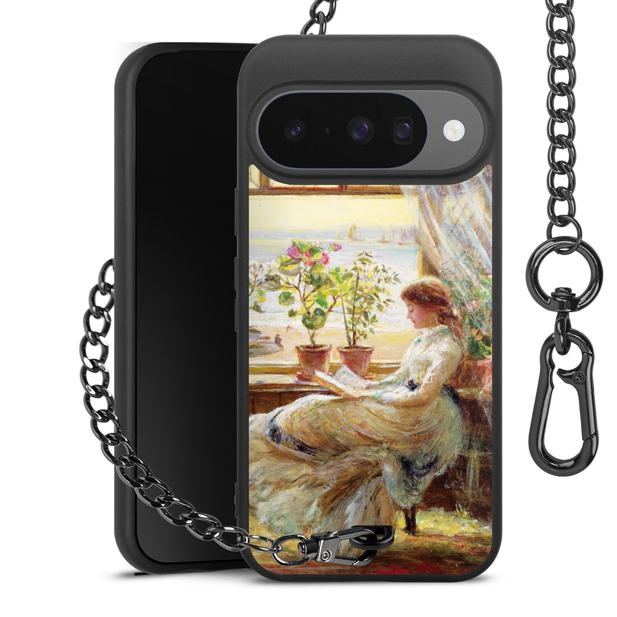 • Mattschwarze Handyhülle mit Metallkette