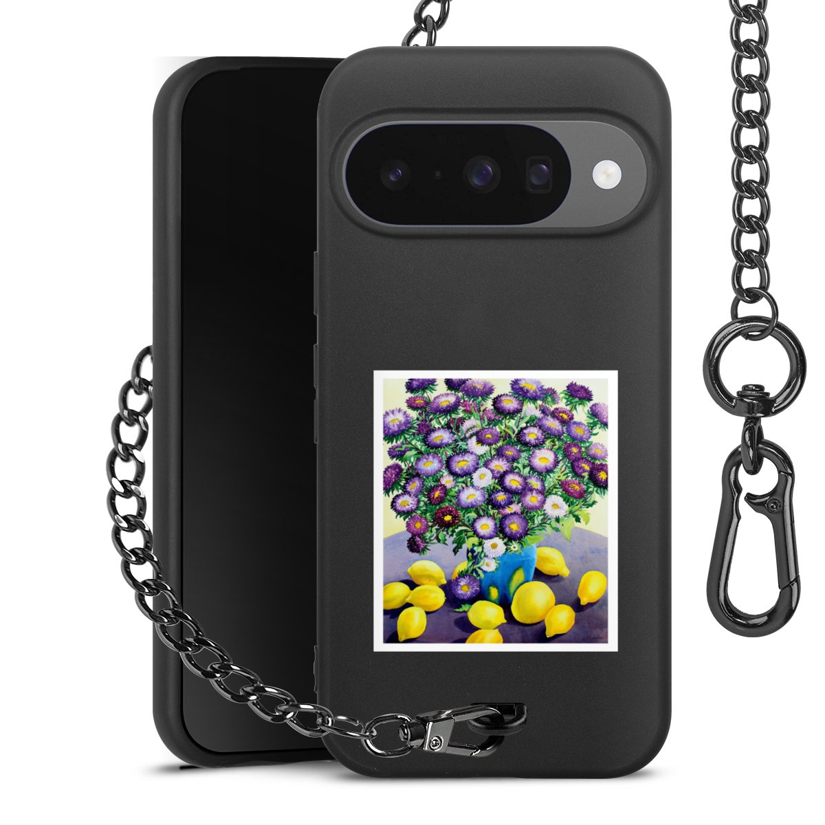 - Mattschwarze Handyhülle mit Metallkette