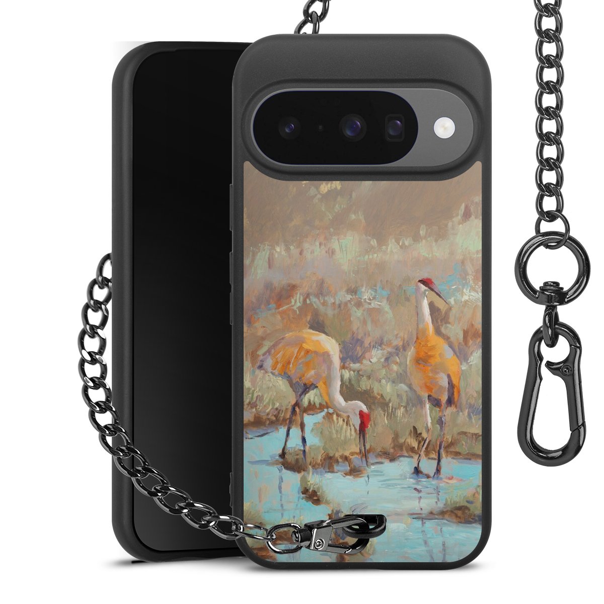 - Mattschwarze Handyhülle mit Metallkette