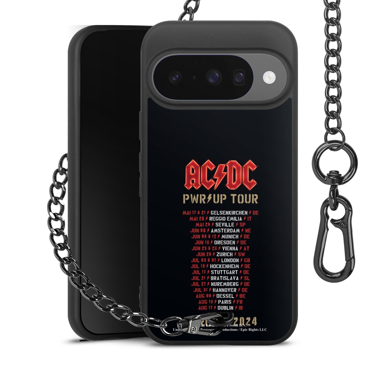 Die mattschwarze Silikon-Handyhülle besteht aus robustem TPU (thermoplastisches Polyurethan). Sie ist flexibel und schützt Dein Smartphone vor Stößen und Kratzern. Die Kette sowie der Karabinerhaken sind aus Metall in Gunmetal-Optik gefertigt. Für dieses Produkt kommen ausschließlich TÜV-geprüfte Materialien zum Einsatz.