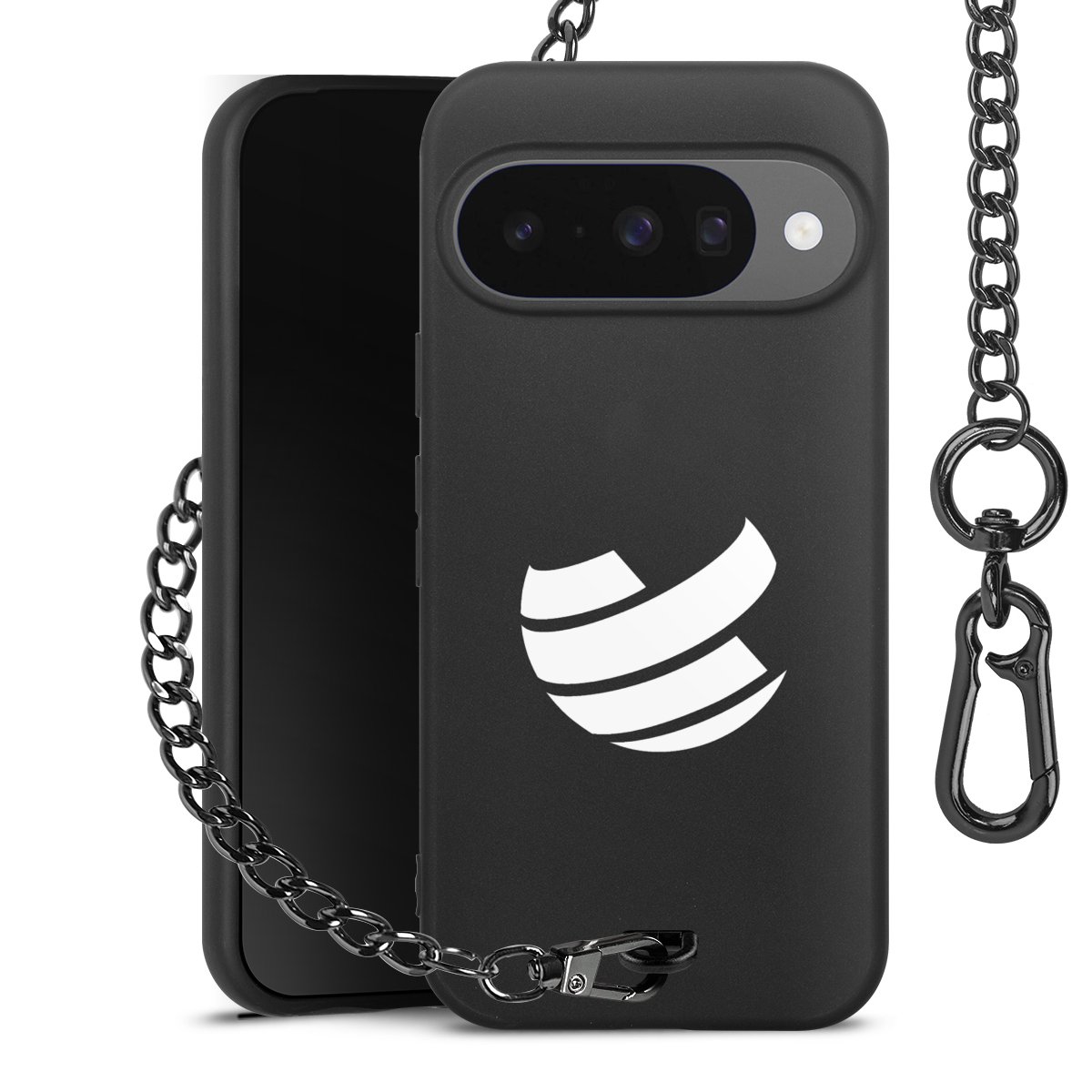 • Mattschwarze Handyhülle mit Metallkette