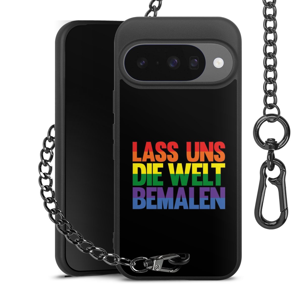 • Mattschwarze Handyhülle mit Metallkette