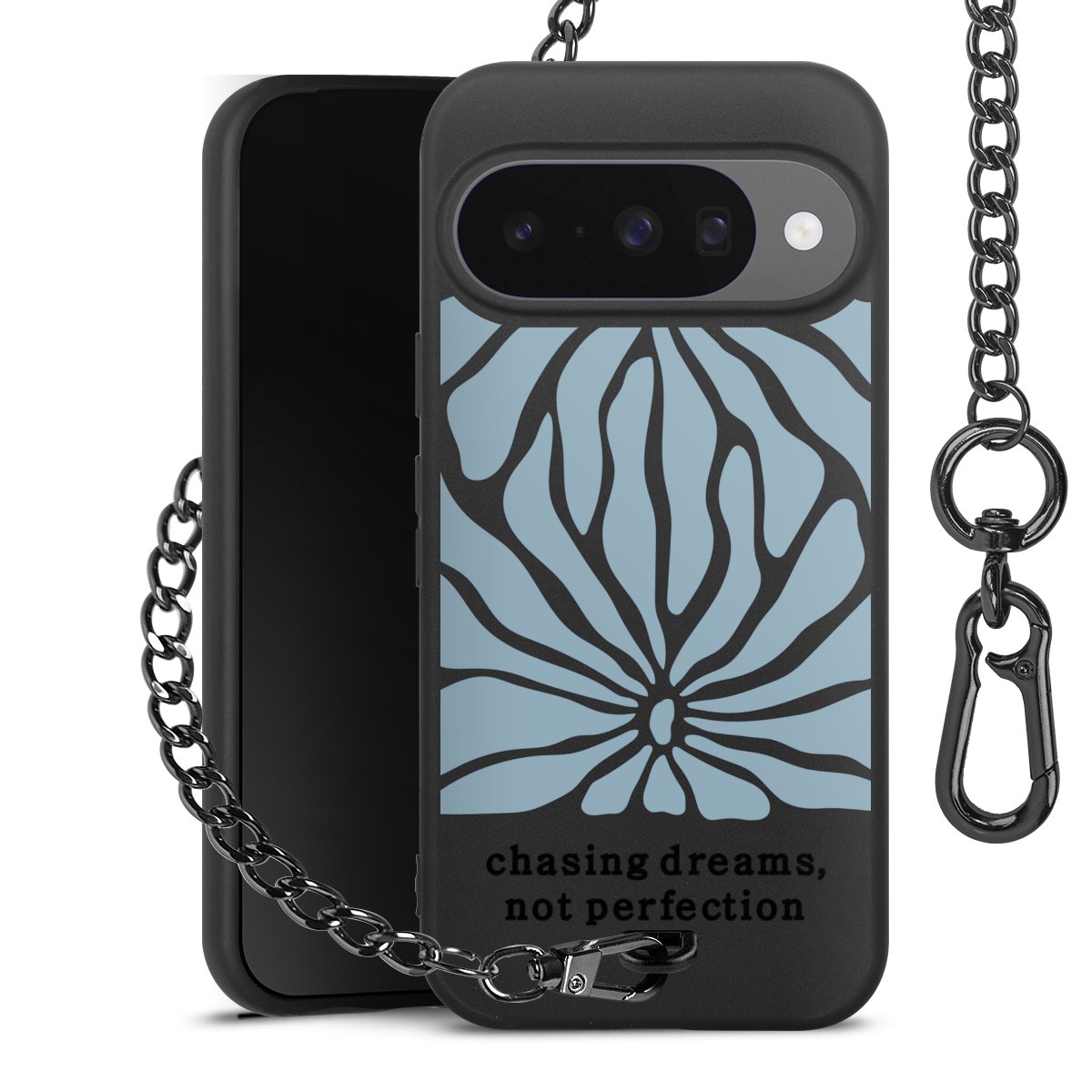 • Mattschwarze Handyhülle mit Metallkette