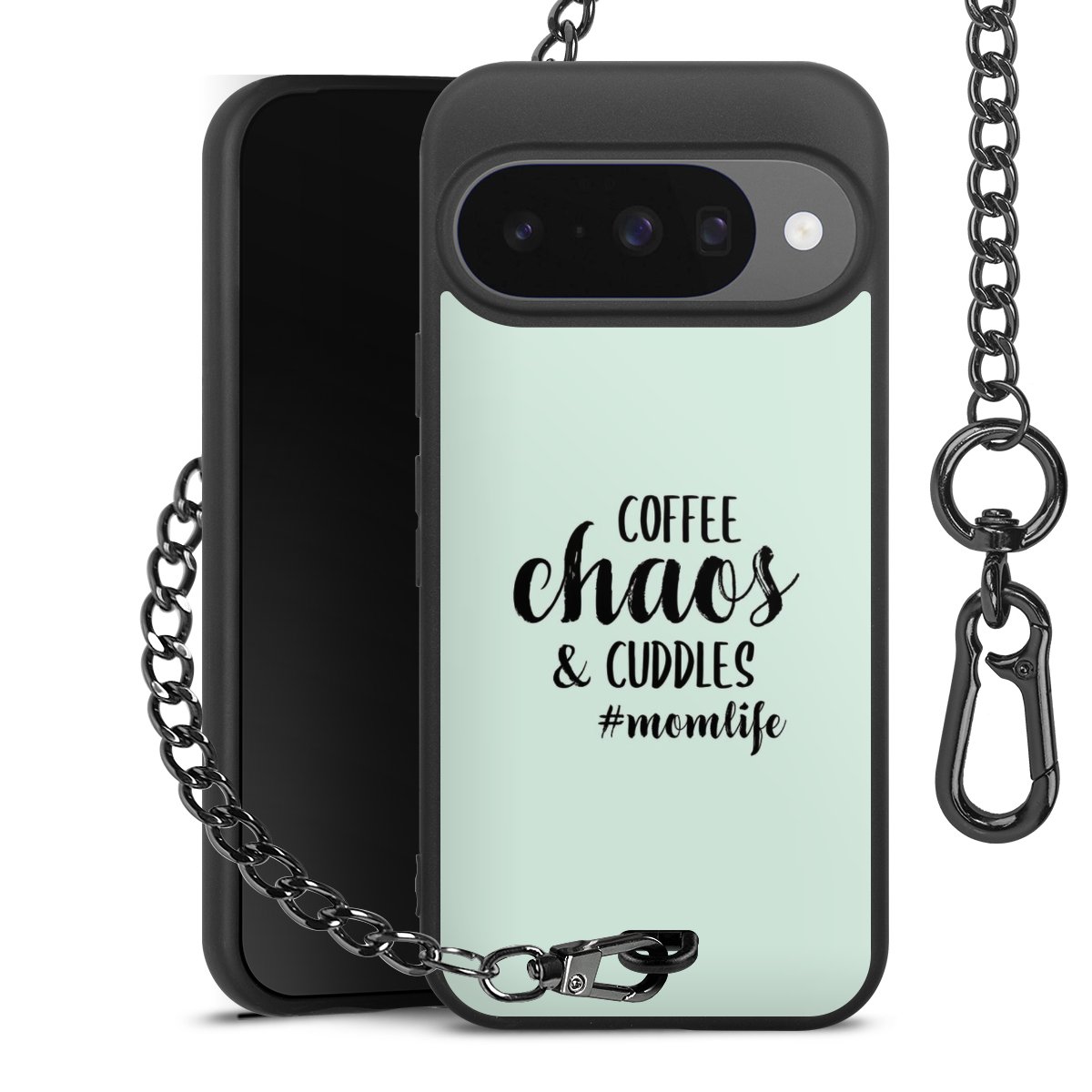 - Mattschwarze Handyhülle mit Metallkette