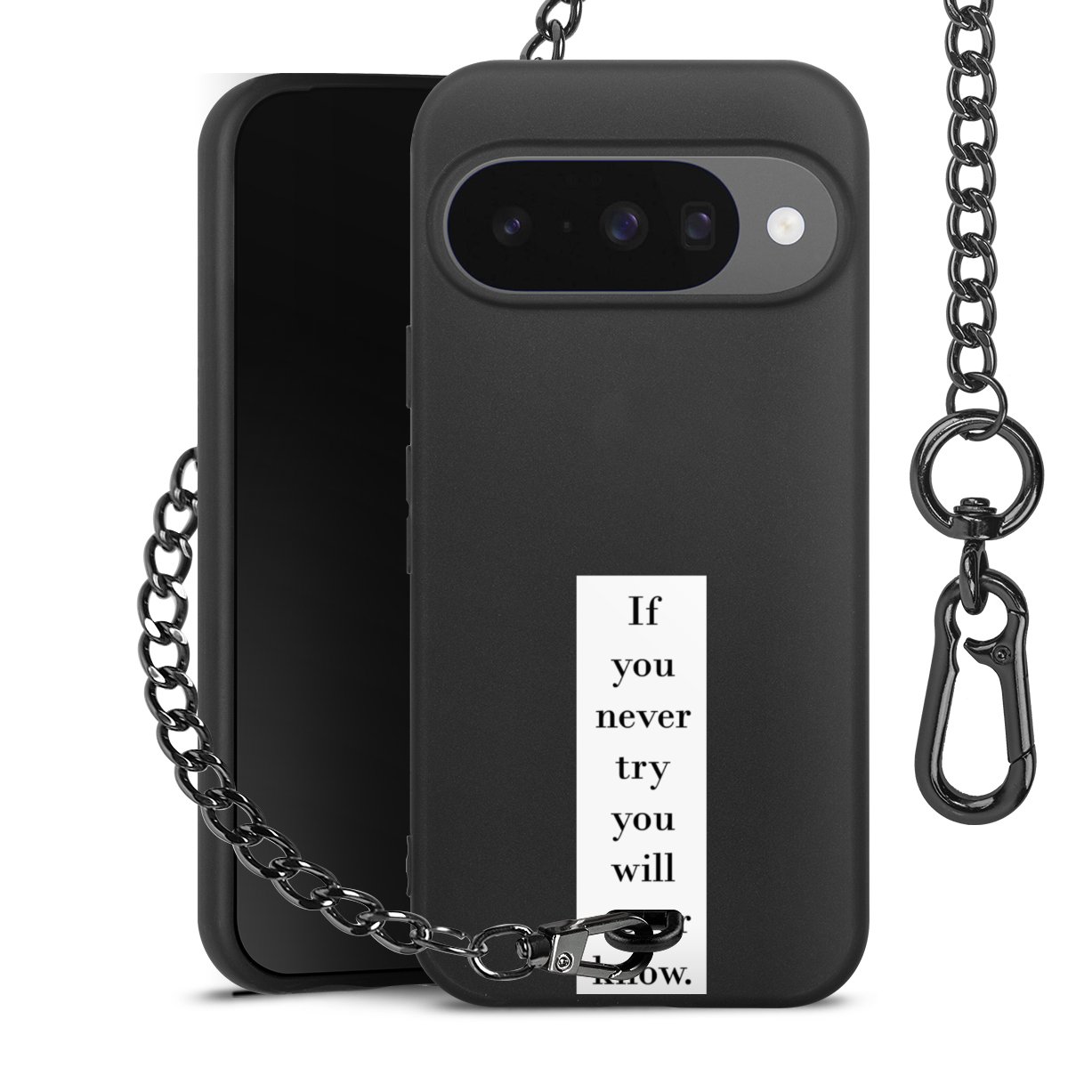 - Mattschwarze Handyhülle mit Metallkette