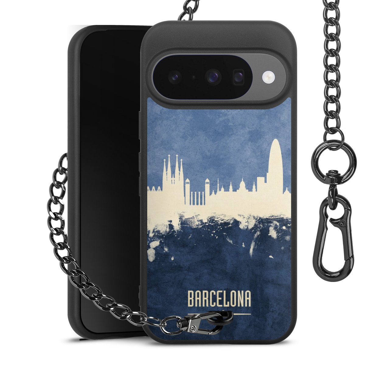 • Mattschwarze Handyhülle mit Metallkette