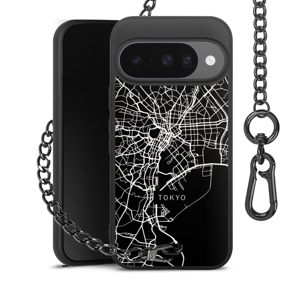 • Mattschwarze Handyhülle mit Metallkette