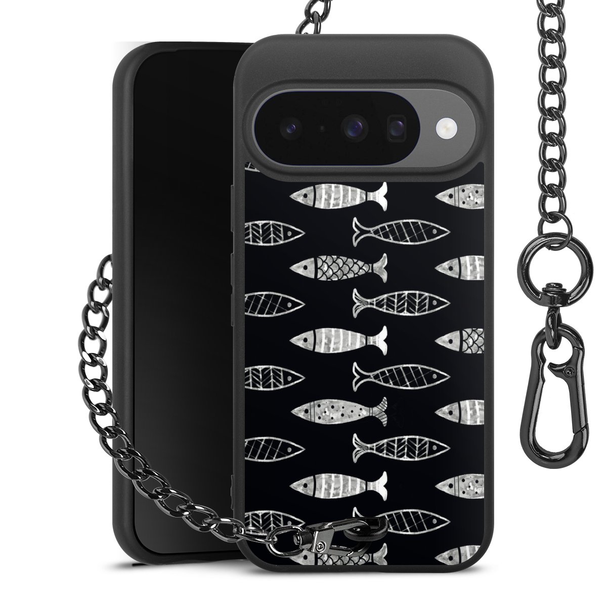 • Mattschwarze Handyhülle mit Metallkette