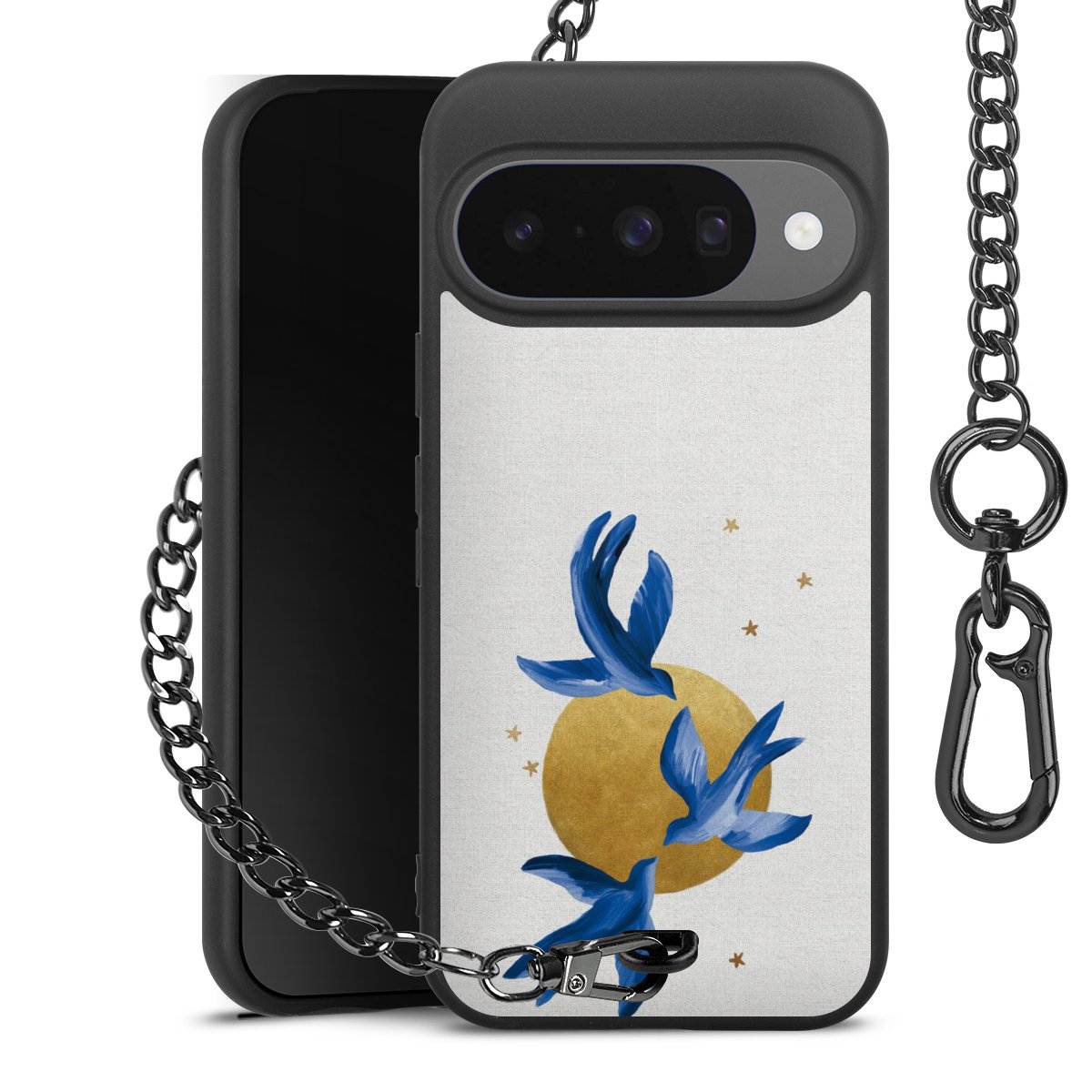 • Mattschwarze Handyhülle mit Metallkette