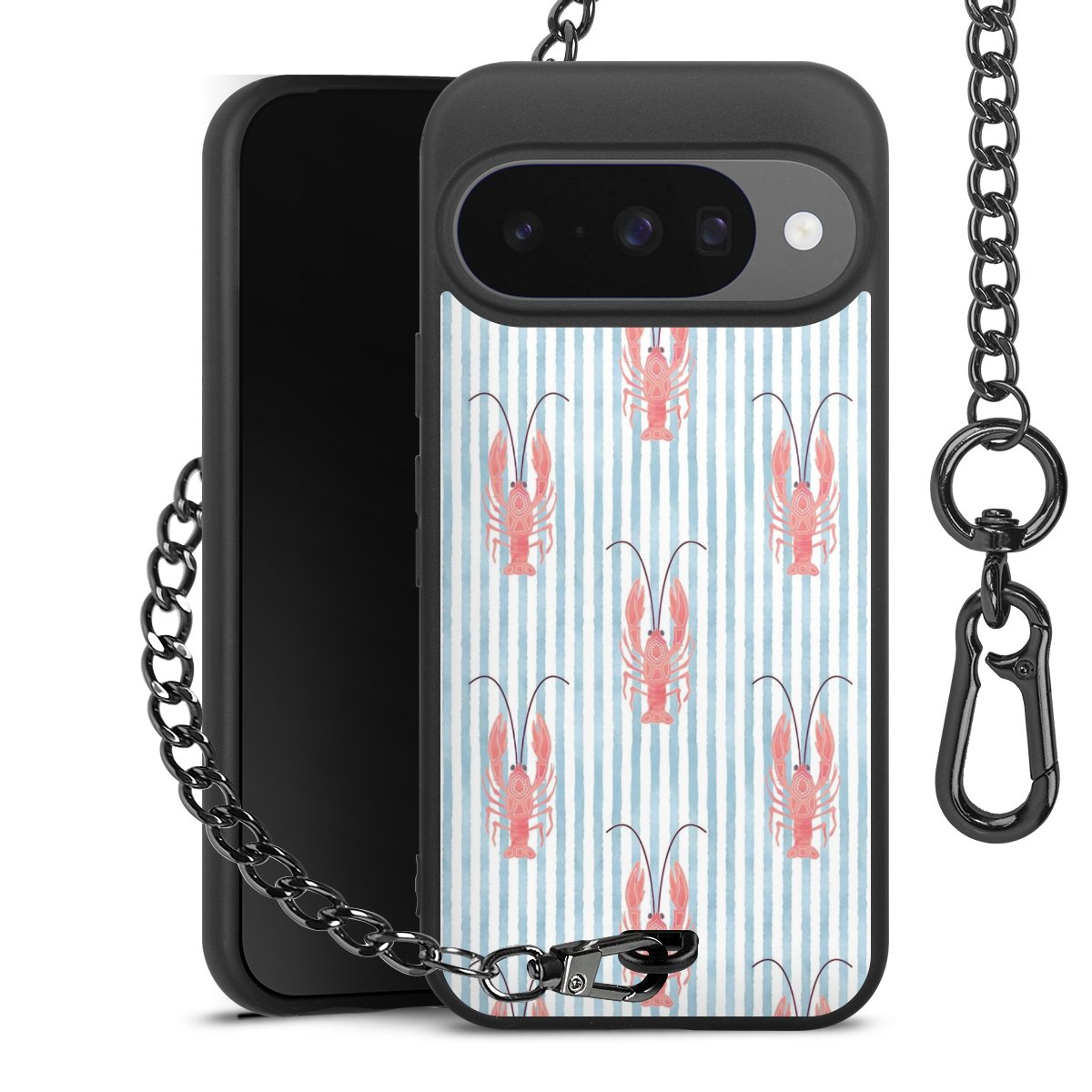 • Mattschwarze Handyhülle mit Metallkette