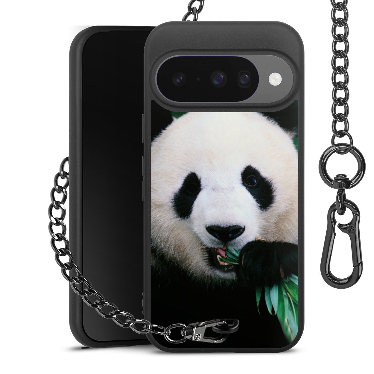 - Mattschwarze Handyhülle mit Metallkette