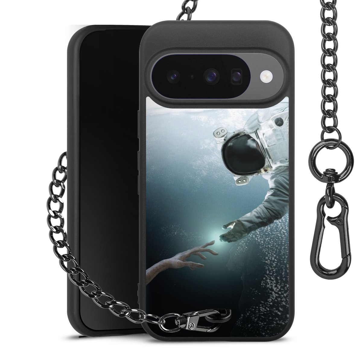 • Mattschwarze Handyhülle mit Metallkette