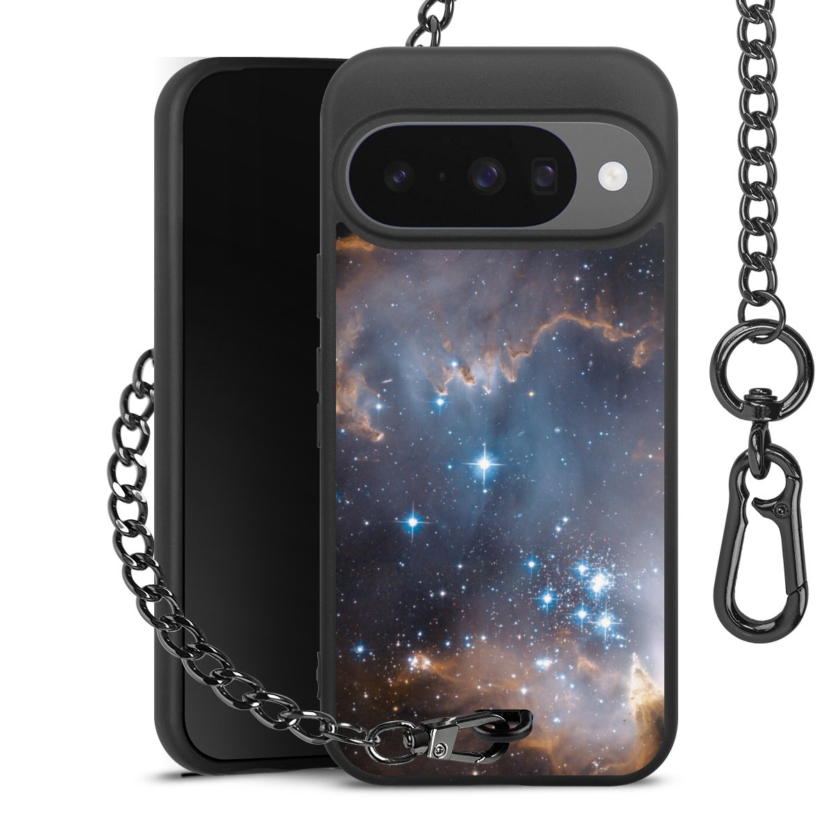 - Mattschwarze Handyhülle mit Metallkette
