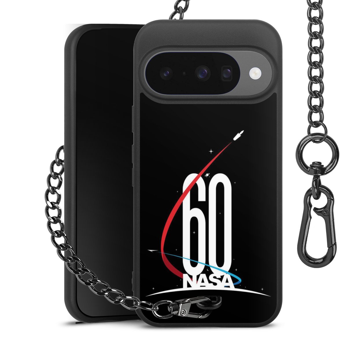 - Mattschwarze Handyhülle mit Metallkette