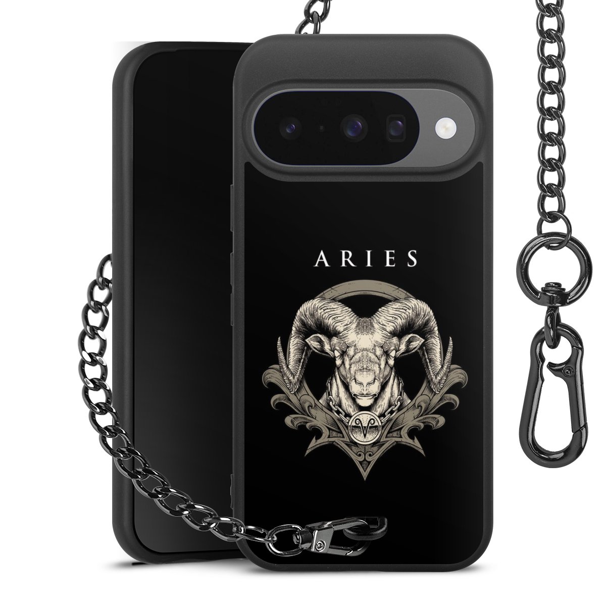 • Mattschwarze Handyhülle mit Metallkette