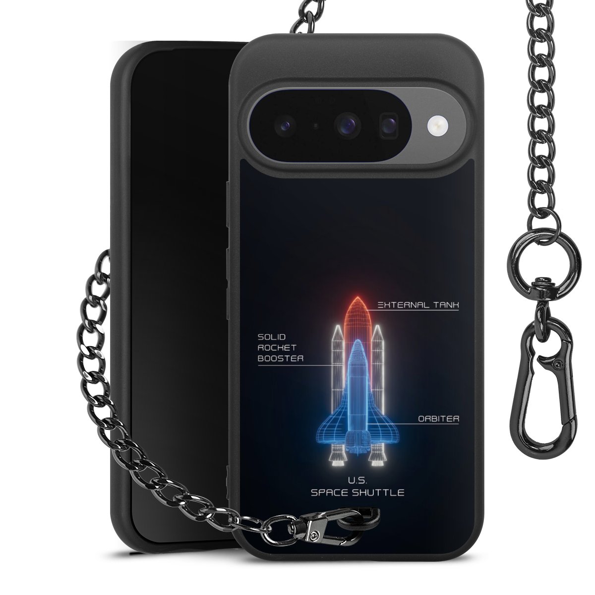 • Mattschwarze Handyhülle mit Metallkette