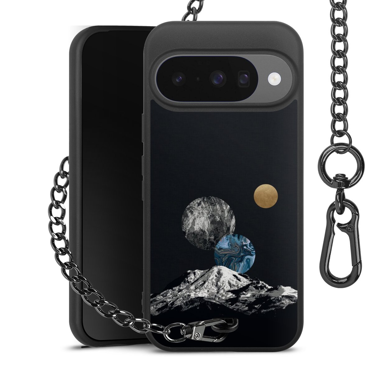 • Mattschwarze Handyhülle mit Metallkette