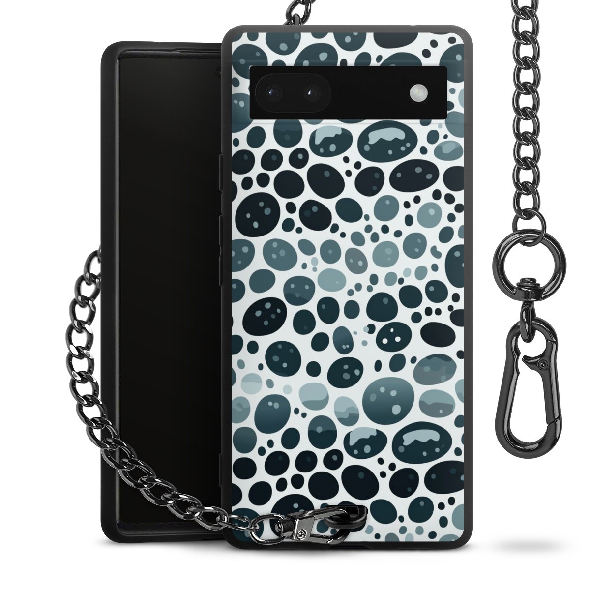 Die mattschwarze Silikon-Handyhülle besteht aus robustem TPU (thermoplastisches Polyurethan). Sie ist flexibel und schützt Dein Smartphone vor Stößen und Kratzern. Die Kette sowie der Karabinerhaken sind aus Metall in Gunmetal-Optik gefertigt. Für dieses Produkt kommen ausschließlich TÜV-geprüfte Materialien zum Einsatz.