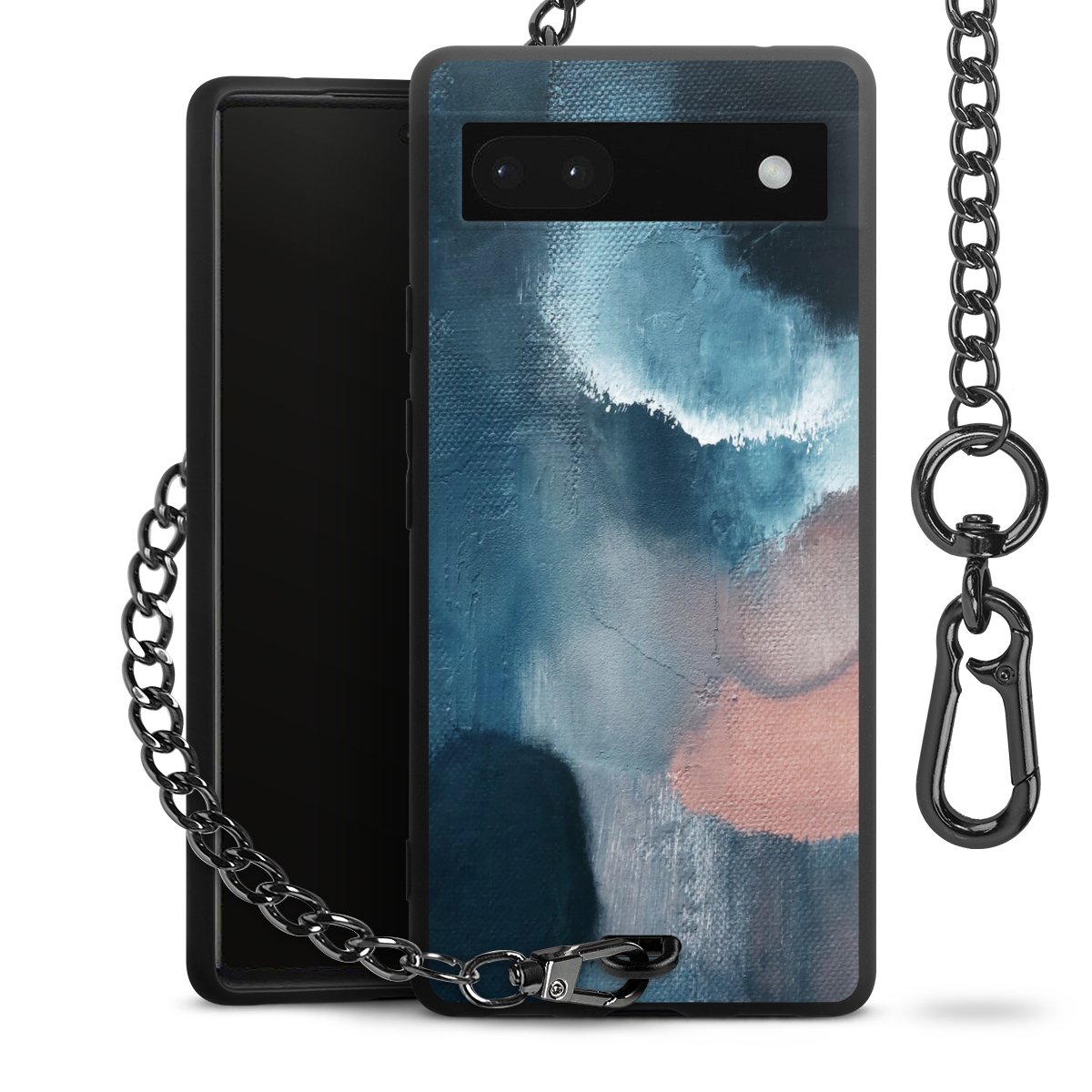 • Mattschwarze Handyhülle mit Metallkette
