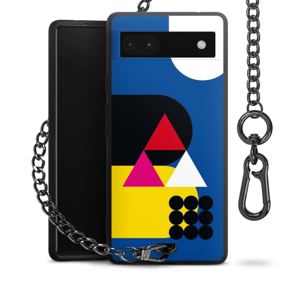 - Mattschwarze Handyhülle mit Metallkette