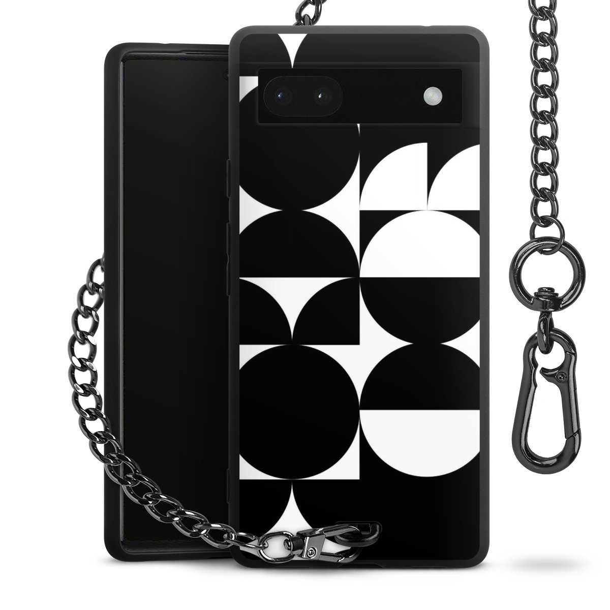 - Mattschwarze Handyhülle mit Metallkette