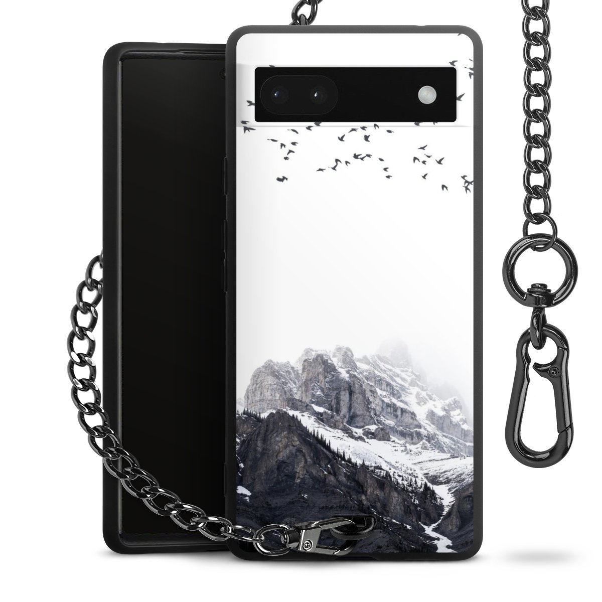 • Mattschwarze Handyhülle mit Metallkette