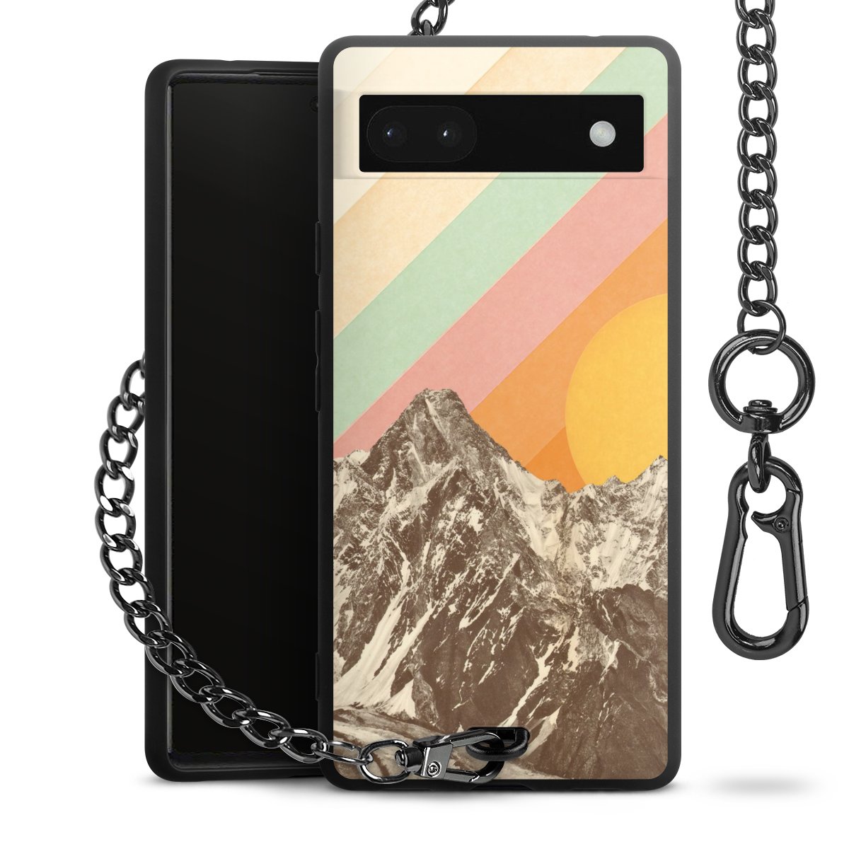 Die mattschwarze Silikon-Handyhülle besteht aus robustem TPU (thermoplastisches Polyurethan). Sie ist flexibel und schützt Dein Smartphone vor Stößen und Kratzern. Die Kette sowie der Karabinerhaken sind aus Metall in Gunmetal-Optik gefertigt. Für dieses Produkt kommen ausschließlich TÜV-geprüfte Materialien zum Einsatz.