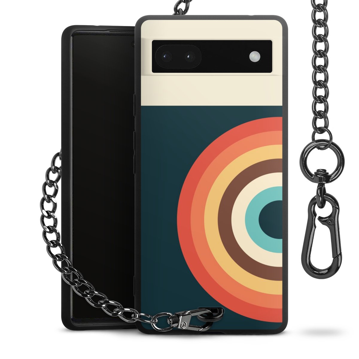 - Mattschwarze Handyhülle mit Metallkette