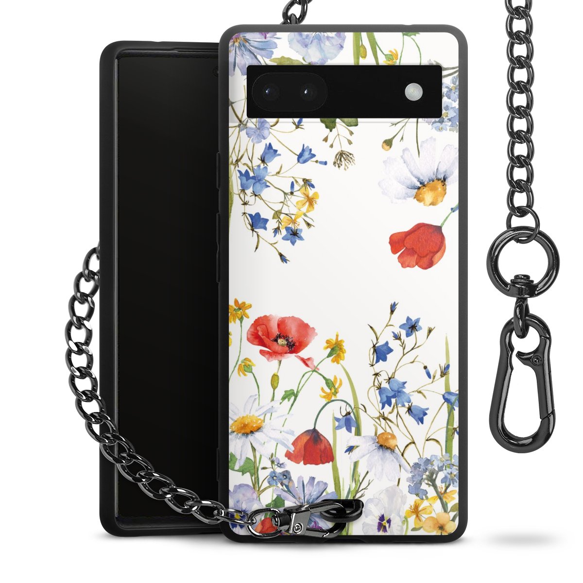 • Mattschwarze Handyhülle mit Metallkette