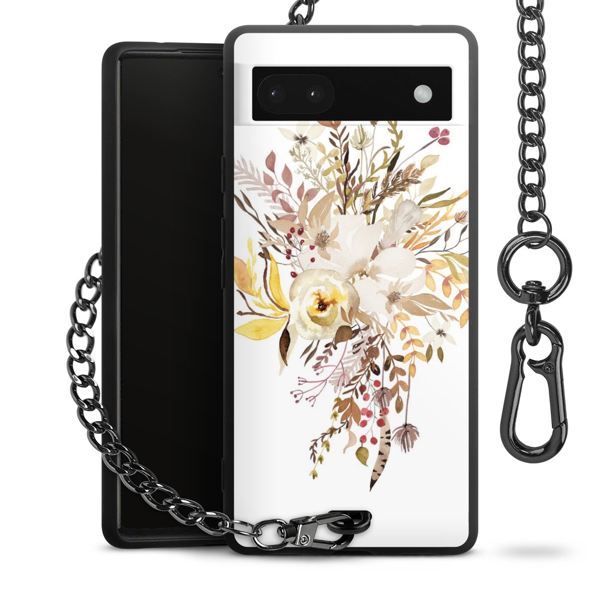 • Mattschwarze Handyhülle mit Metallkette