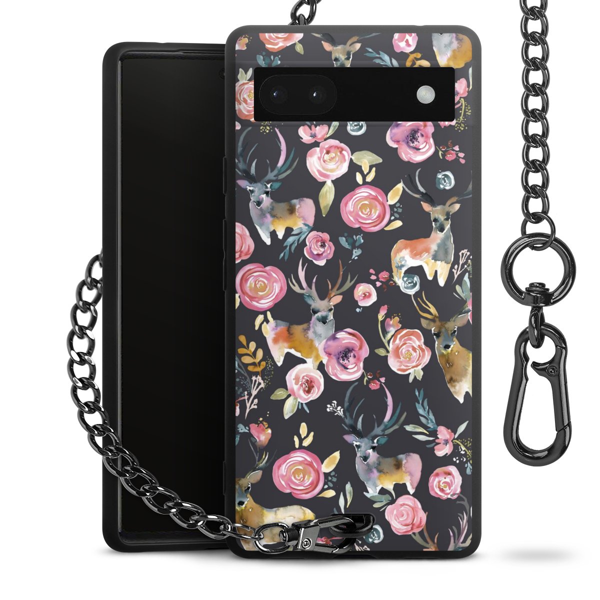 Die mattschwarze Silikon-Handyhülle besteht aus robustem TPU (thermoplastisches Polyurethan). Sie ist flexibel und schützt Dein Smartphone vor Stößen und Kratzern. Die Kette sowie der Karabinerhaken sind aus Metall in Gunmetal-Optik gefertigt. Für dieses Produkt kommen ausschließlich TÜV-geprüfte Materialien zum Einsatz.