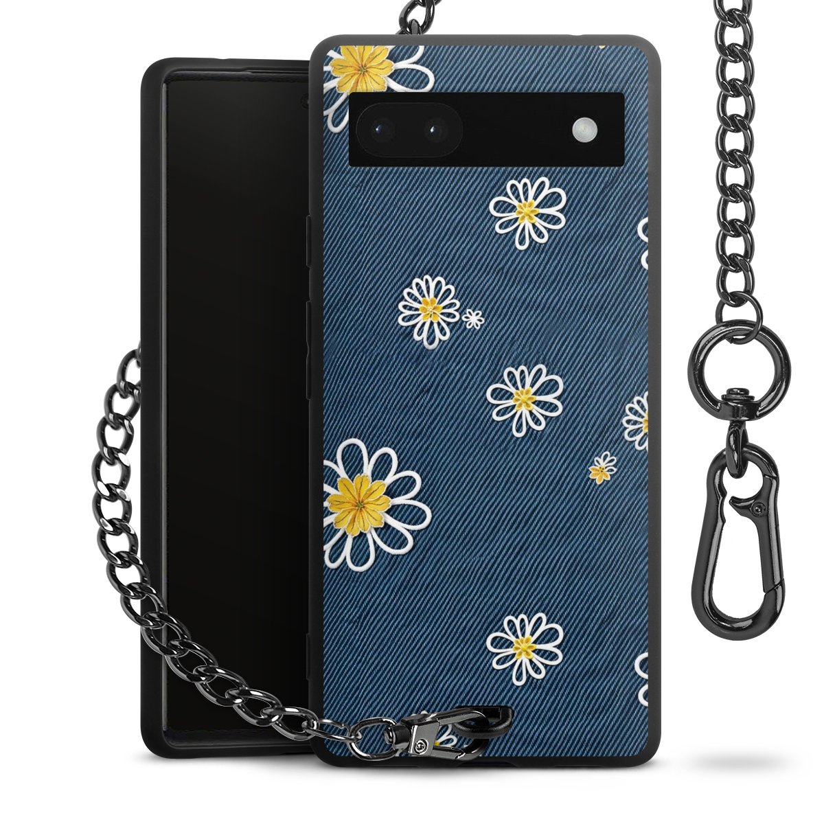 - Mattschwarze Handyhülle mit Metallkette